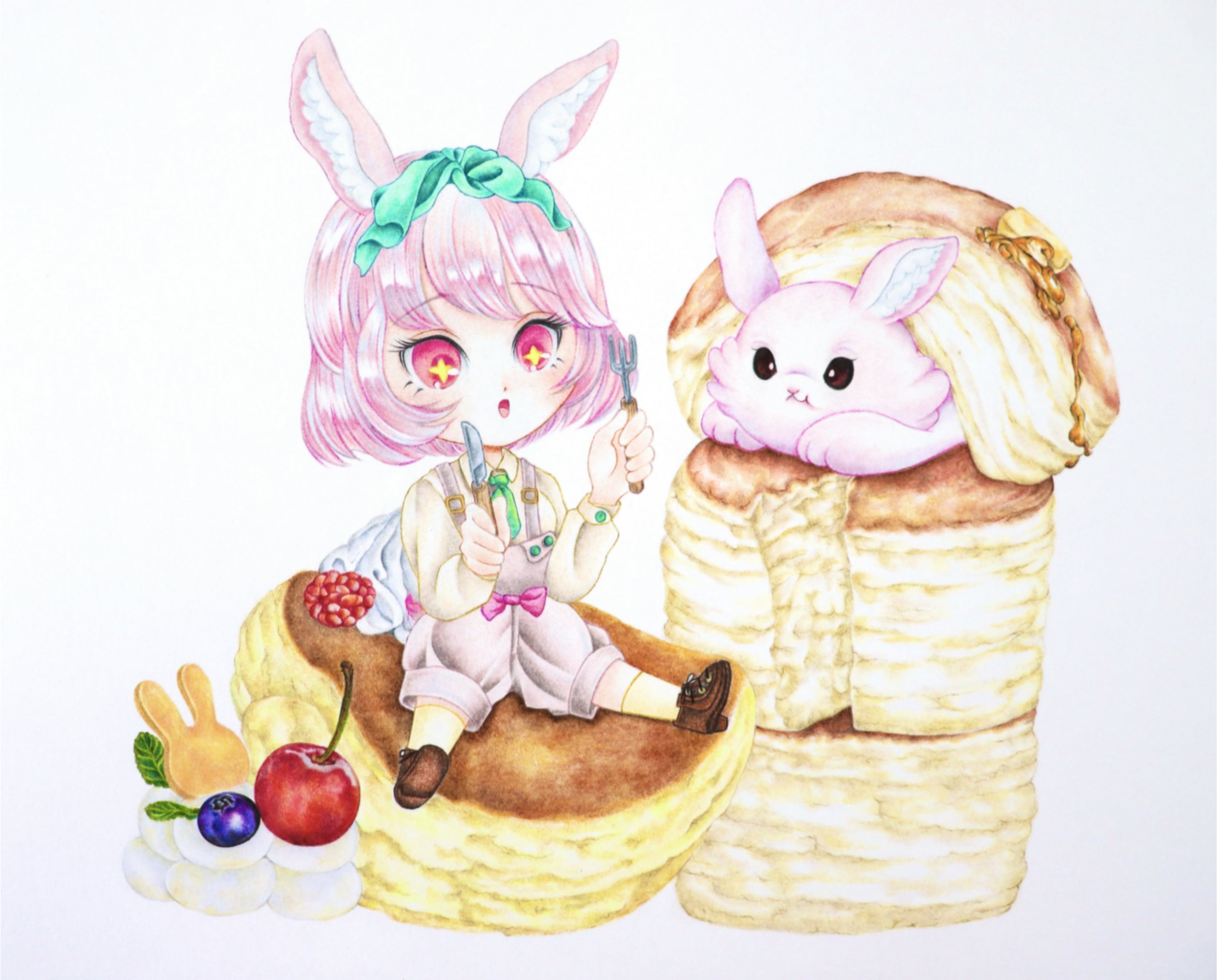 「ルナ、なんでもう(そんなに)食べてるの・・・?」という、切ない於兎ちゃんの表情がポイントです。